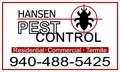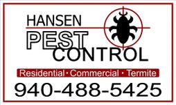 With 22 years of experience in pest control, Hansen Pest Control is a family-run business that prides itself on outstanding customer service and reasonable rates. We have a long list of loyal customers who have been with us for over 22 years; they are not just clients, but part of our family that we serve. Join our family and let us handle all your pest control needs, whether you're in Collinsville,Whitesboro, Aubrey, TX, Little Elm, or anywhere in the North Dallas and North Texas area.